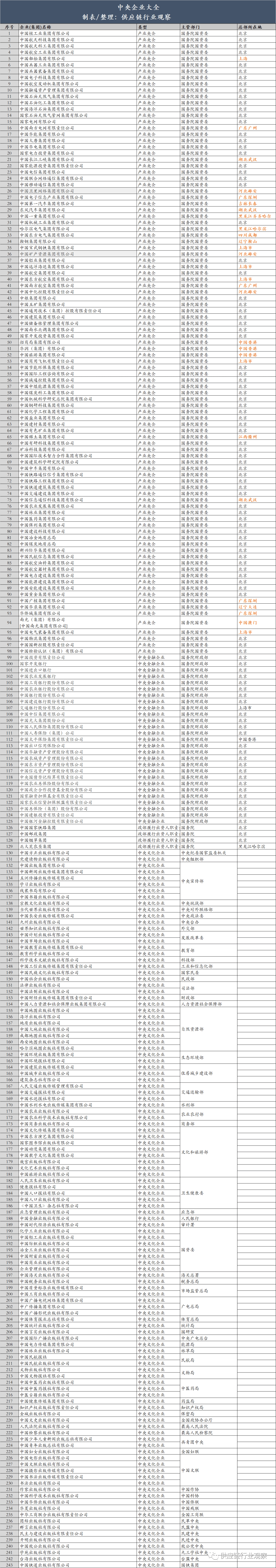 我国目前各类央企共243家,此中有列入国务院国资委央企名录的央企98家、列入财务部地方企业名录的央企145家。这些央企和国企正在2022年的停业收入是82。6万亿,净利润是4。32万亿,上缴税收5。93万亿。约有员工3390万。4月3日,易华录发布通知布告暗示公司收到现实节制人中国华录集团无限公司(以下简称华录集团)通知,华录集团正正在取中国电子科技集团无限公司(以下简称中国电科)规画沉组事项,华录集团拟整合进入中国电科。华录集团取中国电子科技集团整合后,国务院国资委监管的地方企业数量或将由现正在的98家削减为97家。排名1-53的为副部级央企。前53家地方企业的董事长、党委(党组)、总司理的人选由地方局常委会研究决定,这取一般副部长级干部的任免权限不异,因而被认为相当于副部级干部。所以,前53户正在报道中被称为中管企业,可是正在地方发文中,一般称为部门国有主要企业。除前53家央企,其余央企的代表人(大都是董事长)须报国务院党组任前存案同意。其监管由国务院国资委企业带领人员办理二局(简称“企干二局”)担任。前1-10为涉军工央企,别离为:中国核工业集团、中国航天科技集团、中国航天科工集团、中国航空工业集团、中国船舶集团、中国刀兵工业集团、中国刀兵配备集团、中国电子科技集团、中国航空策动机集团、中国融通资产办理集团。第11-22为能源类央企,此中11-14为石油类央企,别离为中石油、中石化、中海油及国度石油天然气管网集团;15-22为两大电网(南方电网、国度电网)及六大发电集团(华能、大唐、华电、国电投、三峡和国度能源集团);23-27为通信及电子消息央企,别离为:中国电信、中国联通、中国挪动、中国卫星收集集团、中国电子消息财产集团;28-33为配备制制类央企,别离为:中国一汽、春风汽车、中国一沉集团、中国机械工业集团、中国东方电气集团;34-37为矿产资产类央企,别离为:鞍钢、中国宝武、中国矿产资本集团、中国铝业集团;38-41为交通运输行业央企,中国近海海运集团、中国航空集团、中国东方航空和中国南方航空集团。42-43为涉农类央企,包罗中国中化和中粮。此外,包罗中国五矿集团、通用手艺集团、中建集团、中国储蓄粮集团、中国南水北集结团、国投集团、招商局集团、华润集团、中国旅逛集团、中国商飞集团分属分歧业业。此外,正在这98家央企中,国务院国资委核准的以金融为从业的央企共3家,包罗中国五矿集团等。以房地产为从业的央企共16家。地方金融企业名录由财务部发布,目前共27家。地方金融企业共分地方办理带领人员的金融企业(以下简称中管金融企业)和其他地方金融企业。其他地方金融企业则为施行国有金融本钱办理相关轨制,由财务部代表国务院履行国有金融本钱出资人职责,纳入国有企业运营预算办理、担任组织实施年度绩效评价等工做。此中中管地方金融企业15家,别离为中国投资无限义务公司、三大政策性银行(国度开辟银行、中国进出口银行、中国农业成长银行)、五大国有贸易银行(工行、农行、中国银行、扶植银行、交通银行)、两大金控央企(中信集团、光大集团)及四大安全集团(中国人保、中国人寿、承平安全、中国出口信用安全集团)。其他地方金融企业12家,别离为四大资产办理公司(华融、长城、信达、东方)、中债登、中国农业再安全、中国政企合做投资基金股份无限公司、国度融资基金无限义务公司、国度农业信贷联盟无限义务公司、中国再安全(集团)股份无限公司、中国建银投资无限义务公司及中国银河金融控股无限义务公司。由国务院授权财务部履行出资人职责的企业共4家,别离为中国国度铁集团、中国邮政集团、中国烟草总公司、北大荒农垦集团无限公司。