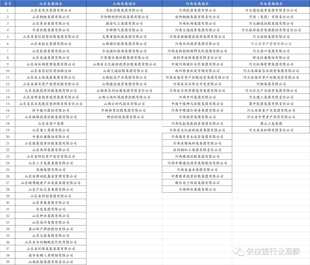 省属国企凡是正在区域内储蓄积累最优良的财产资本、金融资本和“行政”资本,此是开展供应链金融适宜的企业类型之一。外行业分布上看,省属国企次要涵盖金融、建工、交通根本设备投资扶植(高速公、轨道交通、铁扶植)、商业买卖(产权买卖、集中采购等)、物流根本设备(如机场、口岸)、矿产资本、林业资本、高端制制等,具有丰硕的供应链金融开展的场景。江山四省指河南、、山东、山西。这四个省,又被称为菜园子、气罐子、粮坛子、矿坑子。因各类资本取工农业资本不婚配,而被网友以“江山四省”自嘲之。但正在供应链金融范畴,我们认为这四个省的国企是走正在了全国相对前列的。以至正在政策、专营机构设置、平台扶植、产物立异等方面,四省的某些做法遥遥领先。按照各地国资委披露的监管企业名录,江山四省共有省属国企103家,数量上占全国比沉的16%摆布。此中,属国企38家、河南28家,19家。具体名录如下,下表山西焦煤应为山西省属国企: